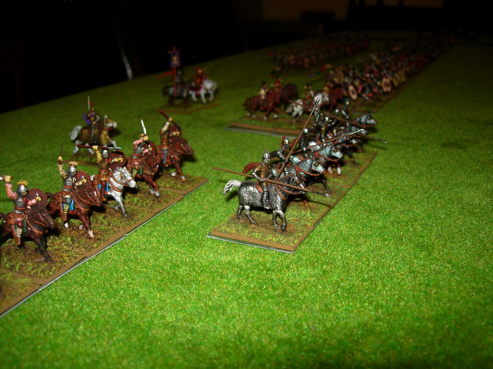 In the right Roman wing, the cataphracts have assaulted the facing enemy cavalry, supported by the horse archers.